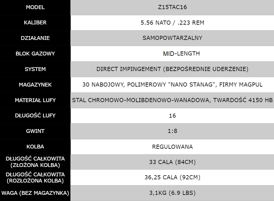 Wyposażony w grubościenną, 16 calową lufę z gwintem 1:8 która jest celna, świetnie radzi sobie z odprowadzaniem ciepła, a dodatkowo zapewnia bardzo dobrą prędkość wylotową i stabilność.