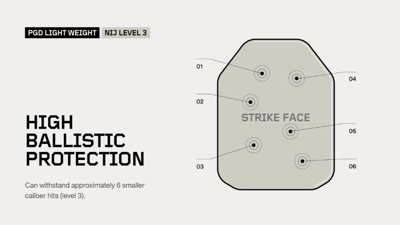 System PGD LW-SA zapewnia ochronę na poziomie NIJ Level III, czyli skuteczną ochronę przed: