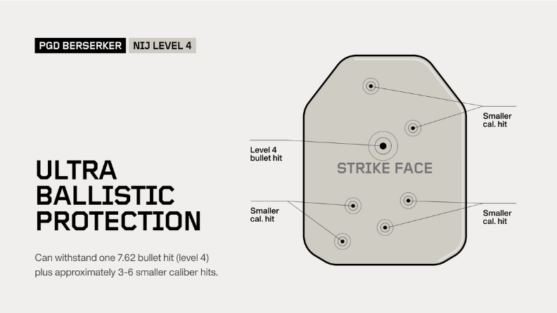 PGD Berserker NIJ Level IV 10x12” to wkład balistyczny zaprojektowany z myślą o użytkownikach, którzy nie akceptują kompromisów w zakresie bezpieczeństwa. To połączenie nowoczesnych materiałów, europejskiej jakości wykonania i najwyższego poziomu ochrony dostępnego w standardzie NIJ.